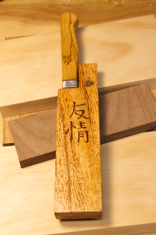Oh…. and the lettering says “friendship” in Japanese (if my research is correct). It was done using a wood burner. Not too bad for free-handing the design and being an amateur at wood burning!